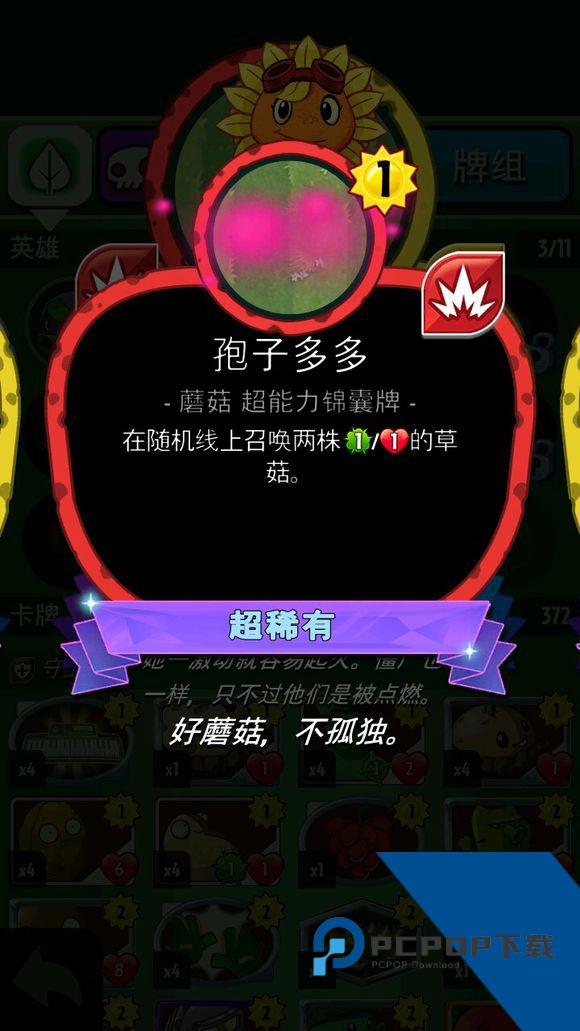 c、孢子多多:在随机线上召唤两株草菇。植物版斗舞,裸下就改名叫盾值多多了。没有健身菇和复仇菇的话,对方的盾值长得呲溜呲溜的。配合蘑菇地带可以快速铺场,然后松果再上场(分子植物滚开点 啊喂),基本上就稳赢了(超新星,9000和灭绝事件+除草剂教你做人)。