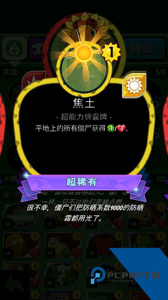 d、焦土:平地上的僵尸获-1/1,植物版酸雨,疯狂克星,打出后疯狂的僵尸基本上非死即残,不是疯狂僵尸的话也有削弱的效果。