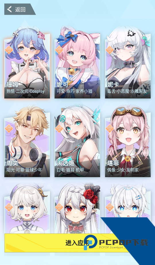 2、在完成注册后玩家就可以选择自己感兴趣的二次元角色进行聊天对话了;