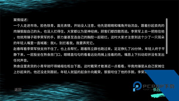 金牙宗大宝手游是一款烧脑有趣的国产悬疑解谜游戏,故事背景发生在繁忙的菜市场之中。一名男子突然眼睛与嘴角开始流血,抄起卖肉用的肉锤猛砸自己的头部。李荣军上前试图抱住他,手却被锤子砸中,那股力道甚至将对方的胸腔一并砸烂。随后赵春晖与陈立群赶来帮忙,才勉强将人压制住。而戴荣刚靠近时险些被那人拽倒,最终是一位老人用飞镖将这名失控者制服