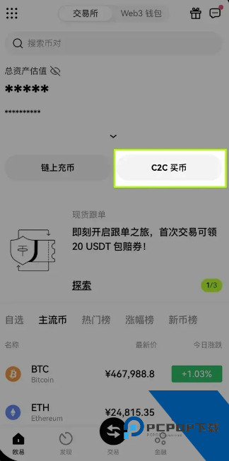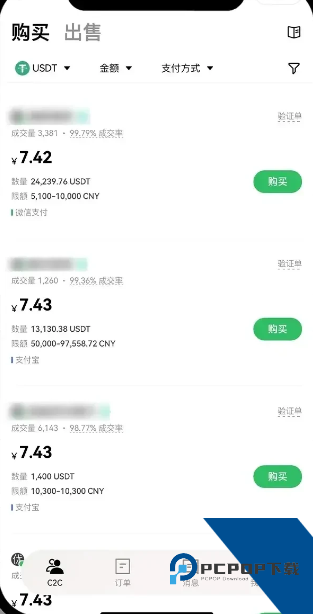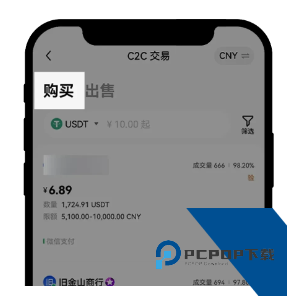 C2C 买币:1)打开 App 首页,点击【买币】- 【C2C 买币】。在购买页面,点击【USDT】可以搜索数字资产,点击【筛选】可以选择委托单类型和支付方式。设置完成后,选出符合条件的商家,点击【购买】。