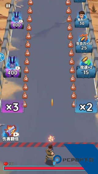 随着关卡推进,僵尸数量会显著增加。此时,可巧妙利用场景中刷新的各类道具(如爆炸桶、支援炮台等)协助清敌。只需移动到道具所在位置附近即可触发效果,合理借助这些资源能有效缓解战斗压力,突破密集的敌群。