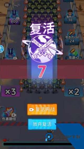 3、如果角色被僵尸咬死的话,可以选择复活再战但是前提要观看一部影片,也可以选择放弃复活重新战斗;