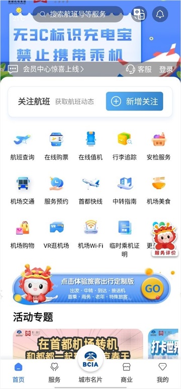 3、机场服务设施和指南:提供首都机场各种服务设施、服务项目信息,以及乘机指南、安检/海关有关规定等通用信息;