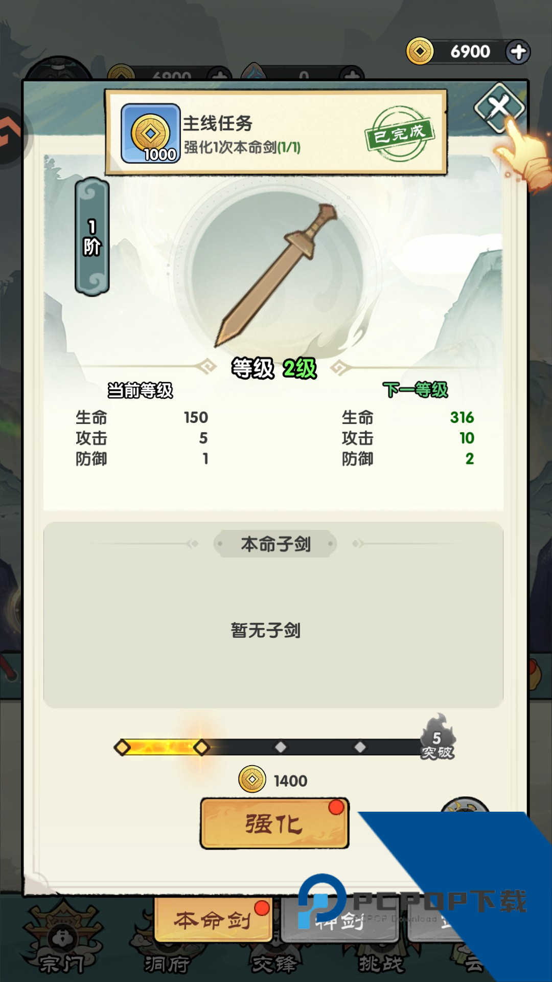 5、你需要不断强化自己的本命神剑提高战斗力。