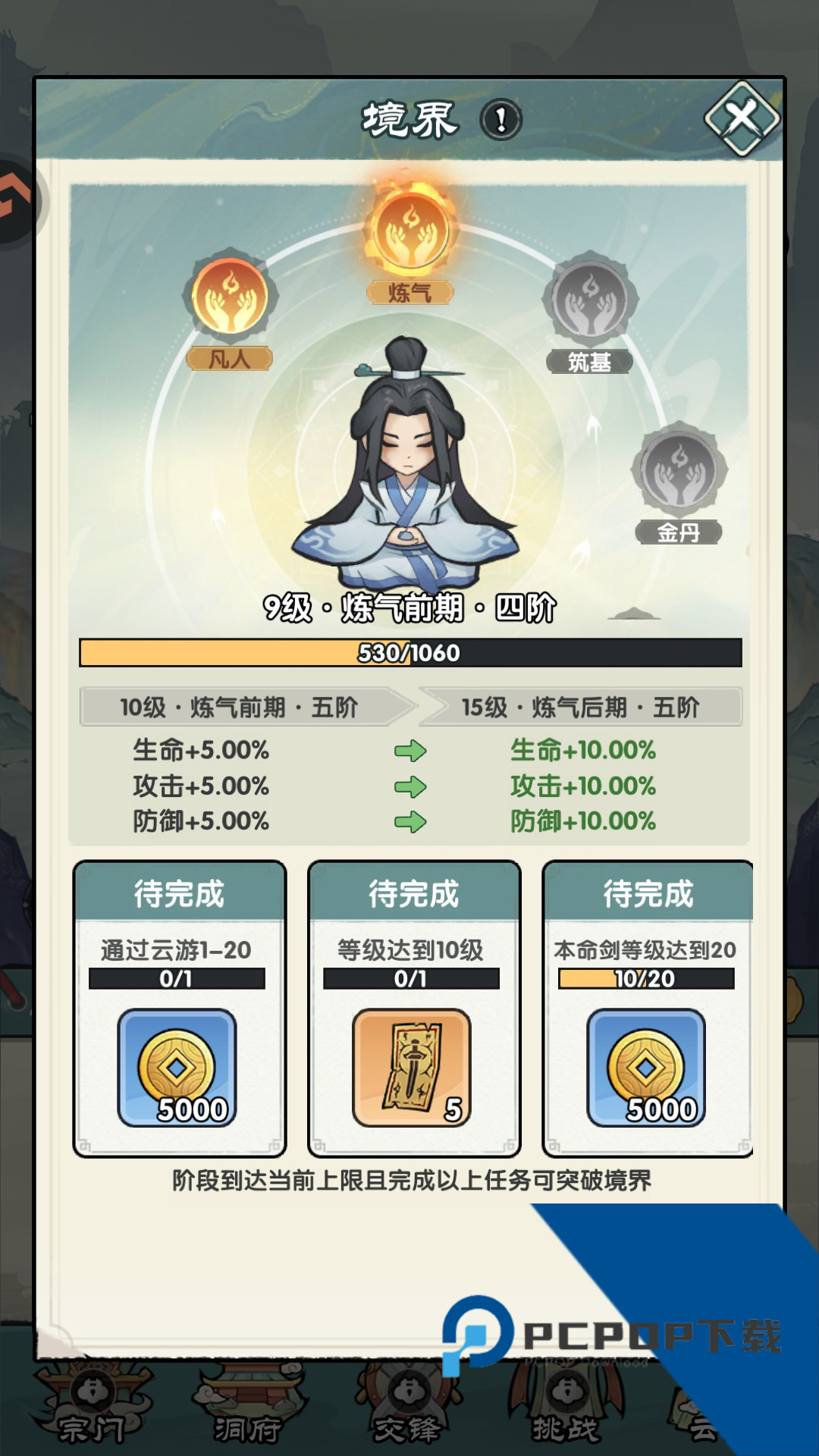 7、完成任务后才能进行境界提升。