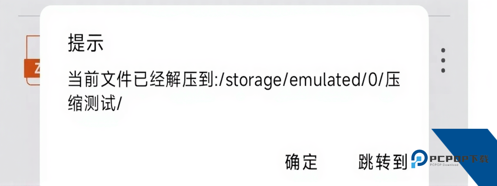 在解压完成后,页面会弹出(如下图)提示,此时则代表文件已经按照要求解压完成。