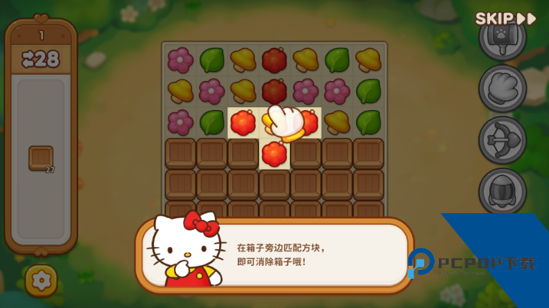 4、在箱子旁匹配相同方块触发消除,同步将对应箱子清理掉。