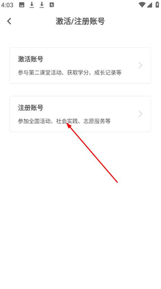 2、在激活/注册账号页面,选择注册账号选项,进入注册账号页面。