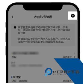 点击右上角“+”—【选择货币】、【收款方式】—可选择银行卡/支付宝/微信支付三种方式,按要求填写相关信息和提示即可完成绑定。