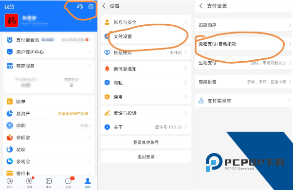 打开「支付宝」,点击我的-右上角设置,选择「支付设置」,选择「免密支付/自动扣款」