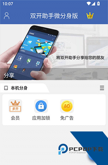 双开助手微分身版app是一款好用的分身多开工具应用,支持手机应用和游戏的免费双开、无限分身功能,让用户可以用一部手机登录多个应用和游戏账号,无需使用其他手机,方便快捷。而且,分身后的应用和游戏使用流畅,安全不闪退,消息提醒也是实时推送,不会出现接收不到消息的情况。