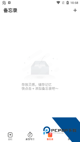 1.打开简记时刻App,在主页点按“+”号即可进入创建新日记本的页面。