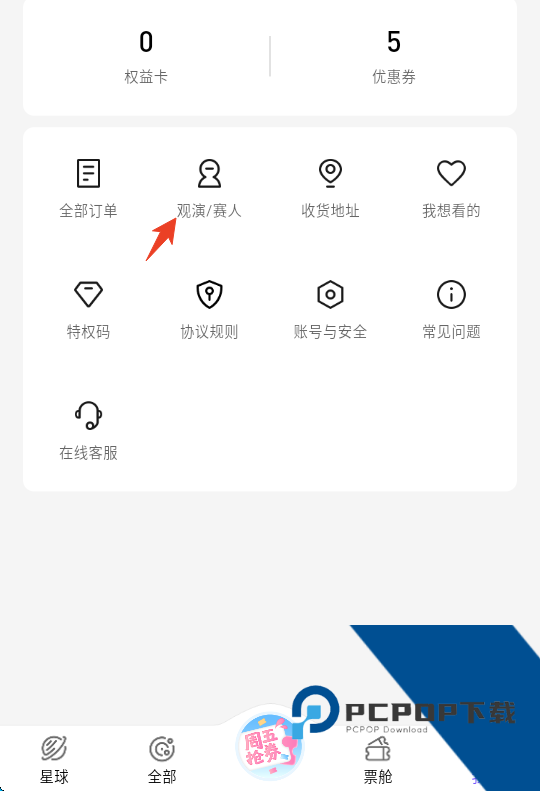 1、打开票星球app,点击右下角【我的】-【观演/赛人】