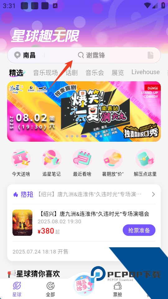 1、打开票星球app,点击上方搜索框