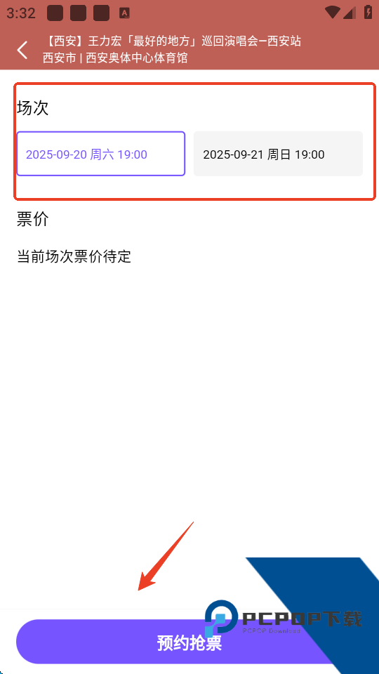 4、最后选择场次,然后点击下方【预约抢票】即可