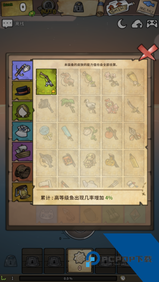 3.skin:收集的鱼竿,装扮等,能小小的满足下喜欢收集的玩家的需求。