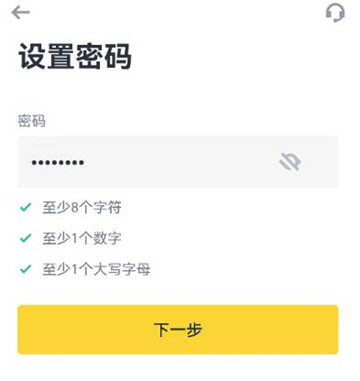 4、设置密码,确保满足以下要求:至少8个字符,包含1个大写字母和1个数字。若有好友邀请,请填写推荐人ID(非必填项)。