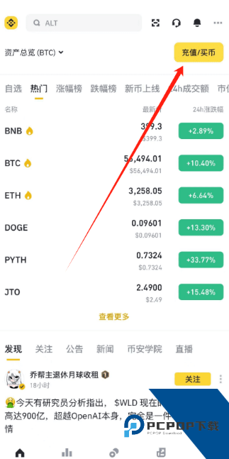 登录币安App,点击【充值/买币】 - 【快捷区】右上角三个点。