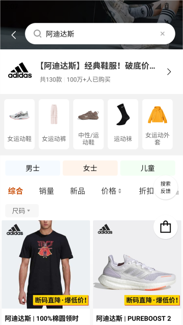 4、或者在分类界面按照商品分类进行搜索选购