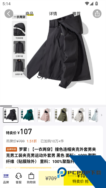 2、然后点击“特卖价 抢”,最后选择商品颜色、大小等,点击下单即可
