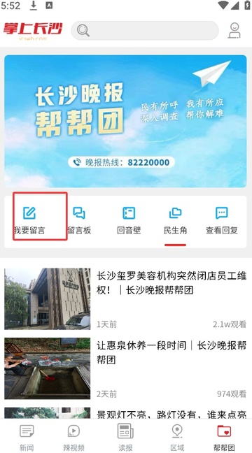 掌上长沙开设帮帮团频道,24小时接受市民网友提问、建议、投诉,长沙晚报记者及时将市民投诉转交长沙相关职能部门,通过跟踪督办、报道等方式推动问题的解决。