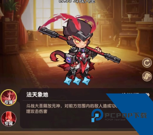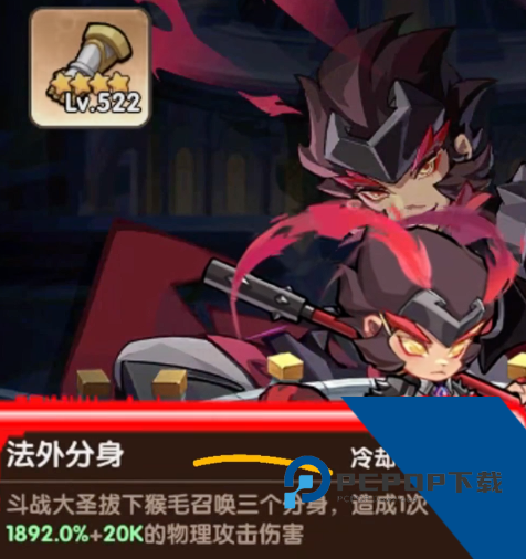 其中斗战大圣的核心技能就是法天象地,可以召唤出三个元神的分身直接从上面降落,降落的瞬间可以造成大量的aoe伤害,基本上多数地图的小怪都会被瞬间歼灭,其输出倍率非常高,可以说是当期版本中最顶尖的输出角色,同时角色还可以受到其他装备的加持,提高整体的输出倍率,后续还能升星,提高大招的释放频率哦。