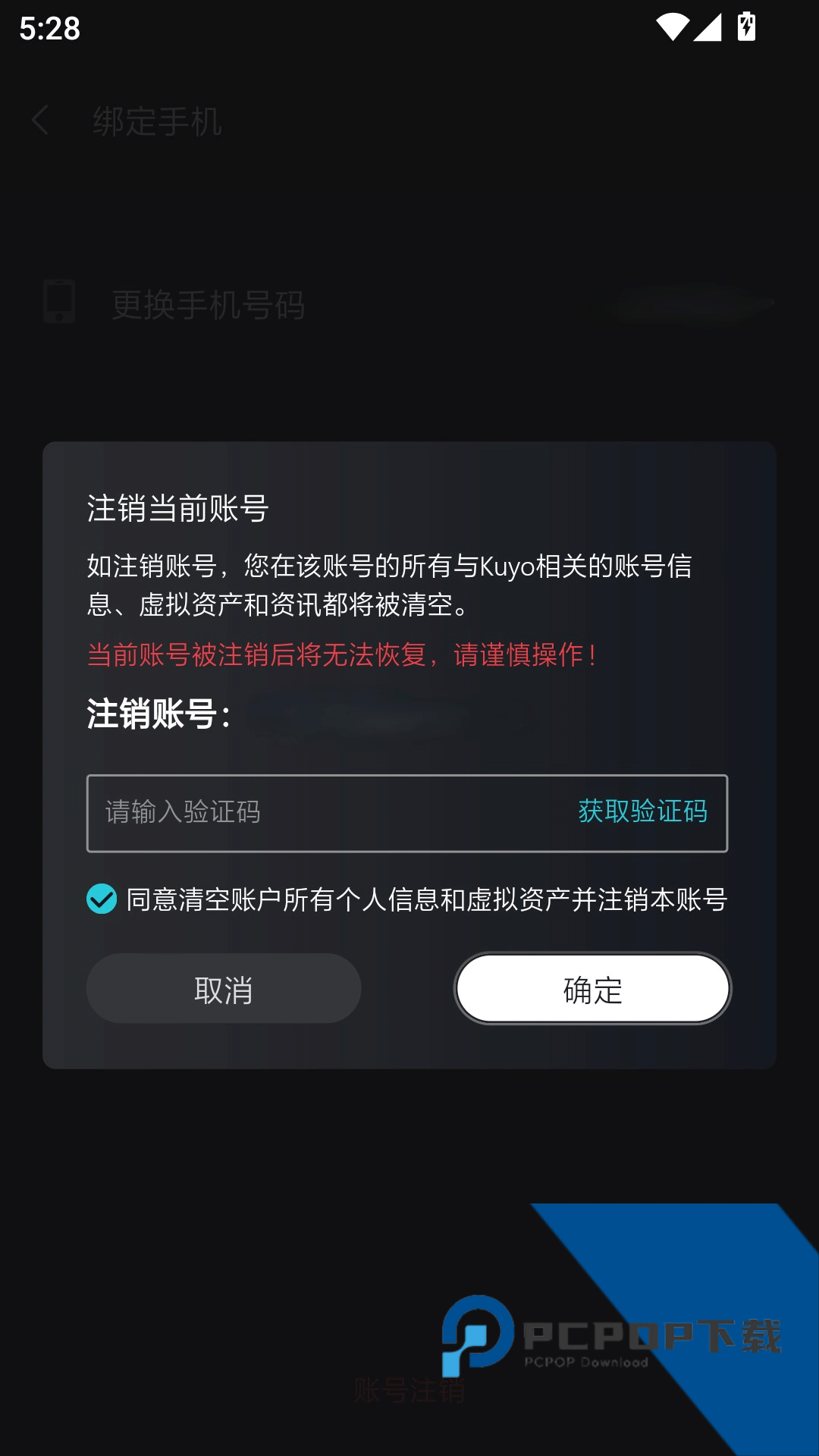 5、最后输入验证码,勾选“同意清空账户所有个人信息和虚拟资产并注销本账号”,点击“确定”即可
