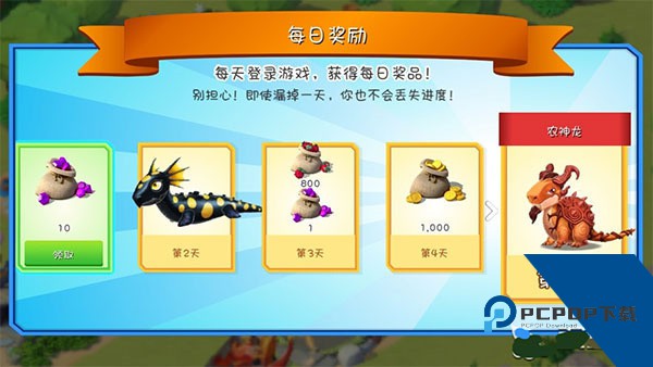 1、每日奖励:每天登陆都会有额外的奖励,登录满7天以后会得到稀有的龙哦。