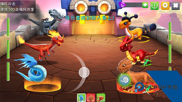 3、战斗期间,把元素滑到龙身上不要立即放开,可以查看对敌方龙伤害的红色血条,合理选择元素用在合理的龙身上,可以减少自己龙受到的伤害。