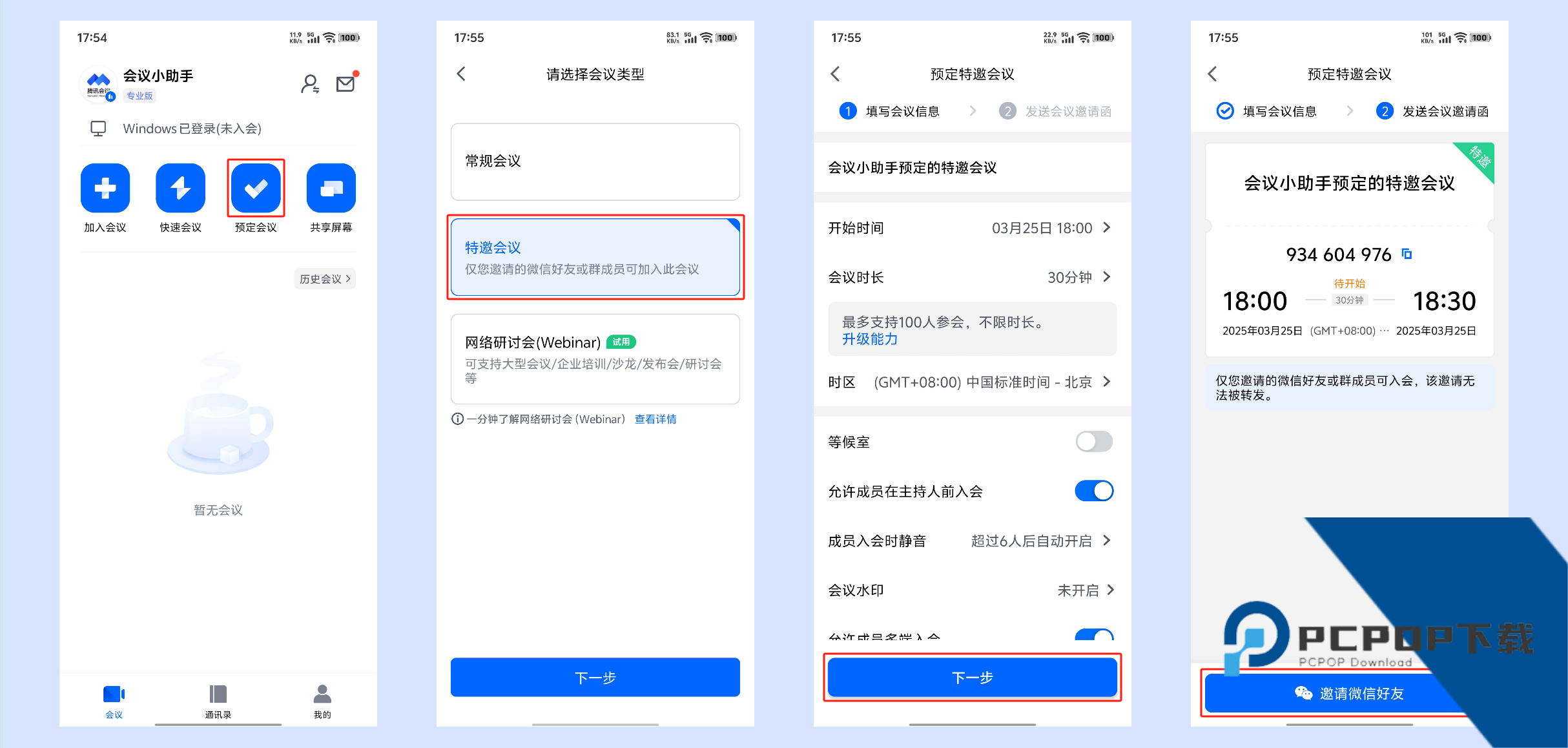 注:如果您在预定或加入特邀会议前没有绑定微信,则需要您先在腾讯会议中完成微信的绑定。