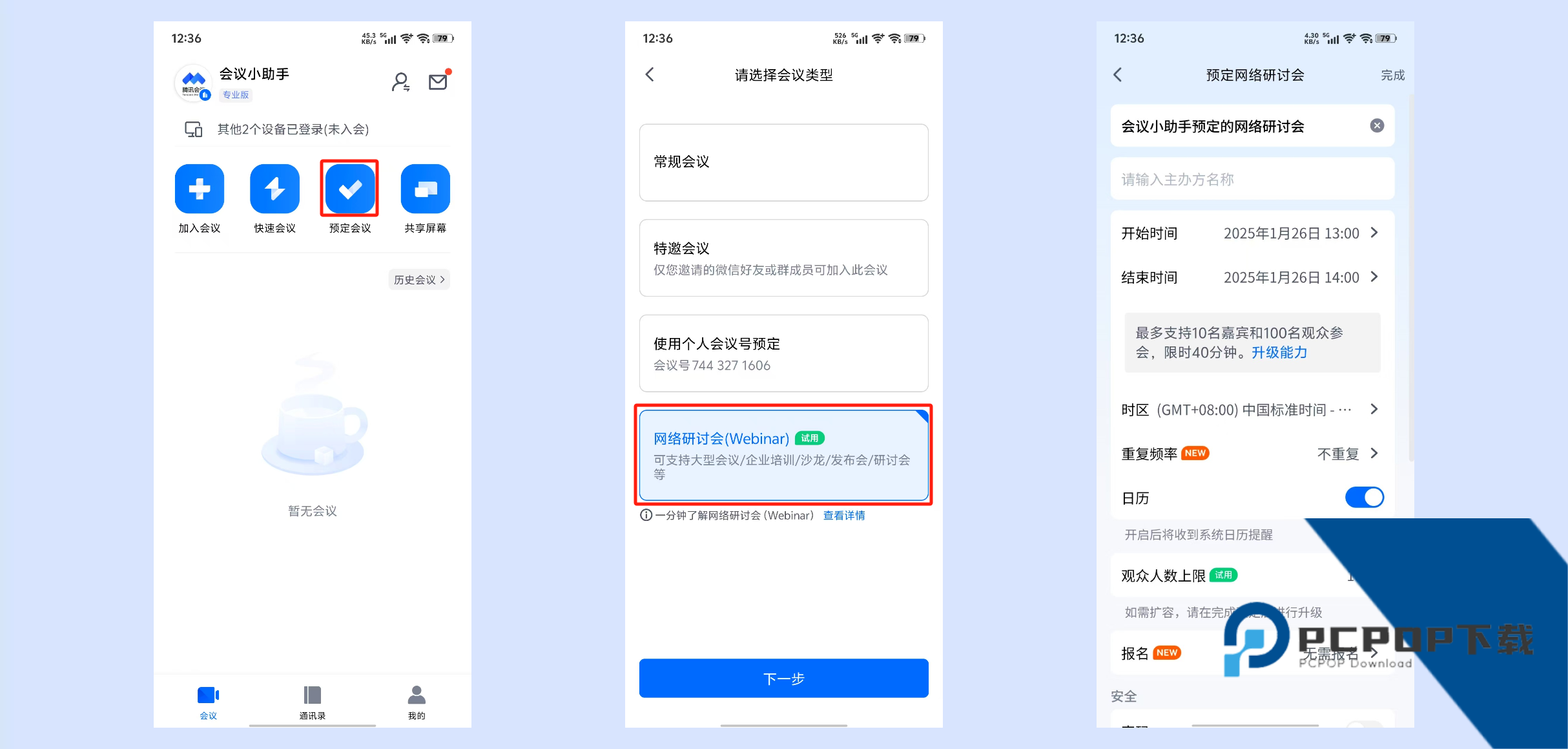 预定会议是指您通过填写预定信息后发起的一个偏向正式的会议。