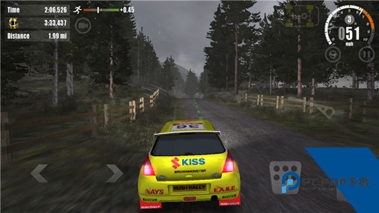 值得一提的是,游戏的赛道虽然都是尘尘土土的拉力赛道,但是游戏的天气系统却做得非常有感觉,举个例子,如果你在雨天跑林地的话,千万要注意转向减速和油门控制,不然你就会感受到什么叫做“雨天湿滑,谨慎驾驶”